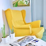Te/kaffebryggare, sitthörna och TV samt kaffe/tebryggare, kylskåp och köksredskap finns också här. Lägenheten består av 6 rum. Gästerna kan använda separat toalett och dusch.